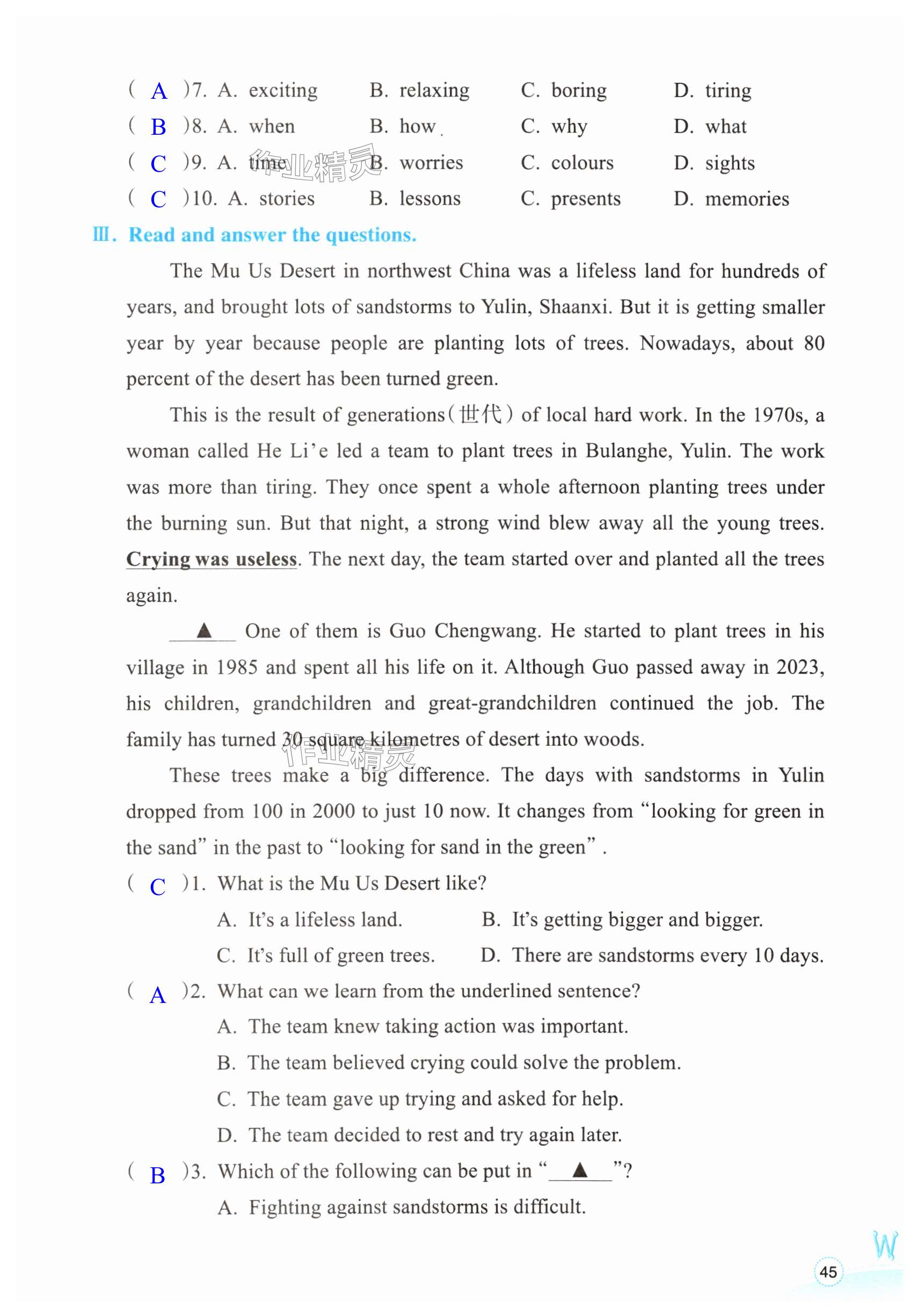 注:目前有些书本章节名称可能整理的还不是很完善,但都是按照顺序排列的,请同学们按照顺序仔细查找。练习册 2025年作业本浙江教育出版社七年级英语下册外研版 答案主要是用来给同学们做完题方便对答案用的,请勿直接抄袭。