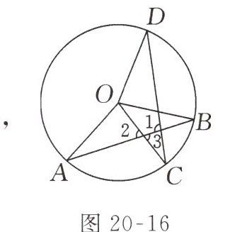 9. 如图 20 - 16,三角形 OAB 是三角形 OCD 以 O 为圆心顺时针方向旋转而成的,如果∠1 = 100°,∠C = 30°,那么三角形 OCD 旋转了多少度?