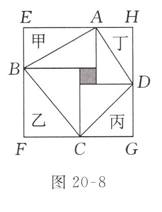 例 9 如图 20 - 8,甲、乙、丙、丁四个长方形拼成一个正方形 EFGH,已知甲、乙、丙、丁四个长方形面积的和是 40cm²,而四边形 ABCD 的面积是 29cm²,求甲、乙、丙、丁四个长方形周长的总和。