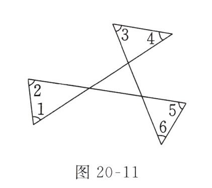 3. 如图 20 - 11,∠1 + ∠2 + ∠3 + ∠4 + ∠5 + ∠6 的度数和是多少?