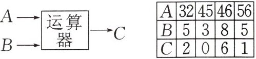 例7 左下图是一个运算器的示意图,A,B是输入的两个数据,C是输出的结果;右下表中,当输入A值是2015,输入B值是7时,运算器输出C值是多少?