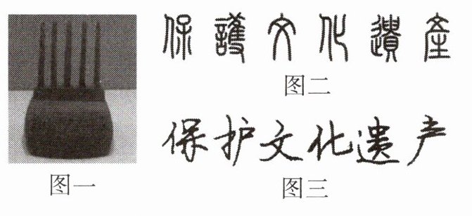 (3)示例一:我选择图二,这是篆书,这种古老的书体与春秋时期的云纹铜五柱器更相配,有相得益彰的历史感和文化底蕴。示例二:我选择图三,这是行书,这种字体简明好认,更适合用来宣传。