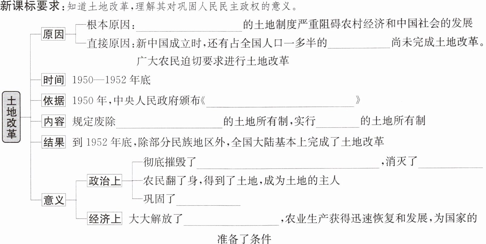 封建剥削的土地制度@@新解放区@@《中华人民共和国土地改革法》@@地主阶级封建剥削@@农民@@我国存在2 000多年的封建土地制度@@地主阶级@@人民政权@@农村生产力@@工业化建设