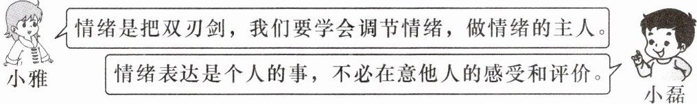 在对“情绪”的讨论过程中,同学们发表了各自的看法: