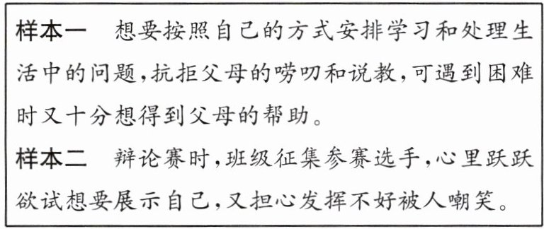 (2)针对调查二中的现象,心理驿站计划制作一期“矛盾心理我调控”的主题板报,请你提供两种办法。(4分)