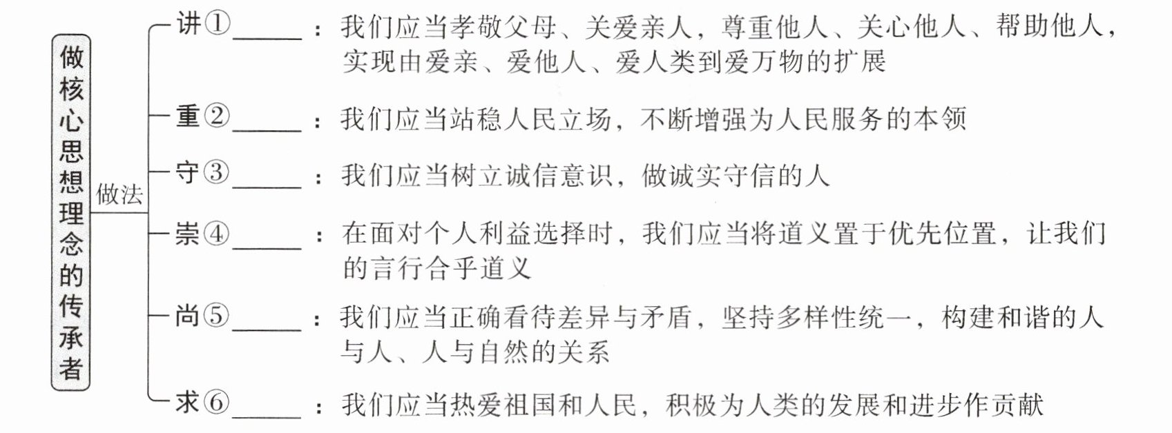①讲仁爱、重民本 ②见义勇为、敬业乐群