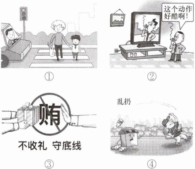 3.(2024·亳州期末改编)下列漫画中的行为彰显了礼义廉耻的荣辱观念的有( )