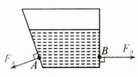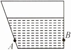 3.(2024·滁州一模)如图所示梯形容器高18 cm,内装水,A、B两点到水面深度相同,画出容器侧壁A、B两点受压力F_{A}、F_{B}示意图。