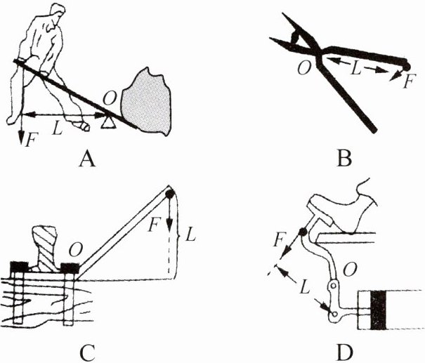 7. 下列四个图中,所作力F的力臂L,正确的是 ( )