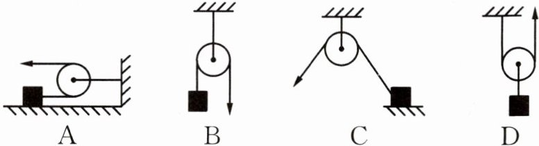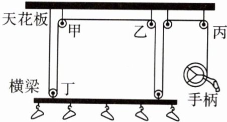 7.(物理学与日常生活)如图为家庭手摇升降晾衣架结构图,当顺时针摇动手柄时,横梁上升。下列滑轮属于动滑轮的是 ( )