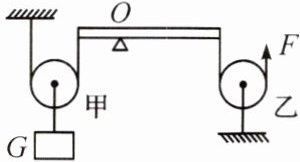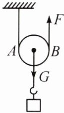 6. 如图所示的动滑轮是变形杠杆,其支点是______点,若重物G = 50 N,动滑轮重为10 N,绳子摩擦力不计,当重物G匀速上升时,则拉力F = ______N。若绳子自由端通过的距离是14 m,则重物G上升的高度是______m。