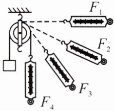 5.(2024·内江)如图所示,一根绳子绕过定滑轮,一端拴在物体上,另一端拴在弹簧测力计上,沿四个不同方向匀速拉起物体,弹簧测力计的示数分别为F₁、F₂、F₃、F₄,则它们的大小关系为 ( )