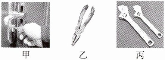 5. 小明通过仔细观察,发现简单机械在生活中有很多实际应用,如:指甲钳、剪刀、钥匙等。将图甲所示的钥匙插入锁孔转动开锁时,钥匙就相当于一个__________(选填“杠杆”“滑轮”或“轮轴”),属于__________(选填“省力”或“费力”)机械;图乙中的钳子属于__________;图丙中的扳手属于__________(均选填“杠杆”“滑轮”或“轮轴”)。