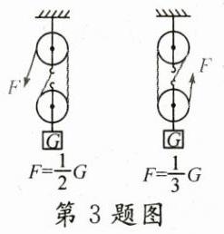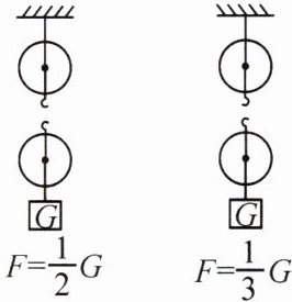 (3)省力情况:使用滑轮组吊重物时,若动滑轮重和摩擦不计,动滑轮被几股绳子吊起,所用的力F就是物重G的__________,即$F = \frac{1}{n}G$(其中n为吊起动滑轮的绳子的股数)。