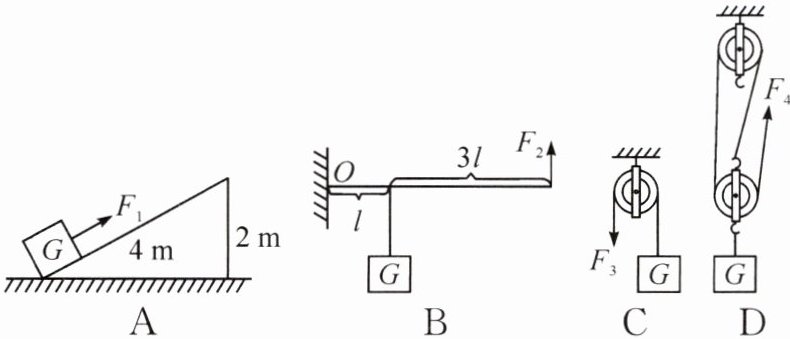 6.(2024·芜湖期中)如图所示,这是使用简单机械匀速提升同一物体的四种方式(不计机械自重和摩擦),其中所需动力最小的是 ( )