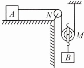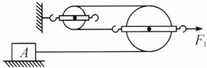 9. 如图所示,物体A的质量为3 kg,滑轮组在拉力$F_1 = 60 N$的作用下,做匀速直线运动,绳子与滑轮的摩擦及滑轮重不计,则物体A做匀速直线运动时受到的摩擦力为 ( )