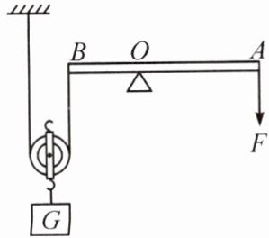 10.(2024·六安阶段练习)如图所示,动滑轮重1 N,物体重7 N,当$OA = 2OB$时,为使轻质杠杆保持水平平衡,在A端沿竖直向下的方向所施加的力应为______N(不计绳重及摩擦)。