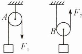 7.(2024·亳州期末)如图所示,用不同的滑轮分别匀速拉动同一个物块匀速竖直上升(忽略滑轮自重、绳重和所有摩擦力)相同的高度,则拉力之比$F_1:F_2 =$________;绳自由端拉长度之比$s_1:s_2 =$________。