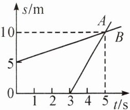1. 沿同一直线向东运动的两物体 $A、B$,其运动相对同一参考点 $O$ 的距离 $s$ 随时间 $t$ 变化的图像如图所示。