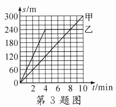 3. (2023·合肥模拟)甲、乙两同学同时同地沿平直公路向同一个方向行走,$0~10\ min$ 内,他们行走的路程 $s$ 随时间 $t$ 变化的规律如图所示,下列说法中正确的是 ( )