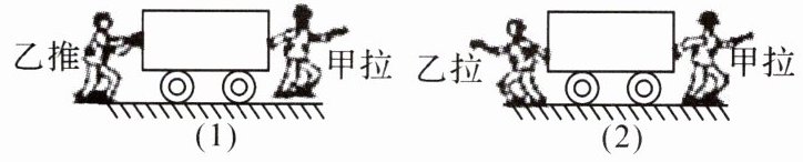 3.(习题改编)如图所示,甲同学用力100 N,乙同学用力200 N(二力在同一直线上),则:在(1)图中,合力为______N,方向______;在(2)图中,合力为______N,方向______。