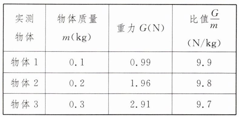 (2)比值$\frac{G}{m}$的平均值$g = 9.8 N/kg$,它的物理意义是______________________________;