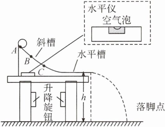 (1)水平槽上有一气泡水平仪,当气泡水平仪中的空气泡居中时,表示实验装置水平。若空气泡在右端,为保证实验装置水平,应调节升降旋钮使左侧的桌面______(选填“升高”或“降低”)。