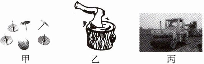 甲图中图钉尖很尖锐,乙图中斧头的刃越薄越锋利,这是利用在压力一定时,减小______来增大压强;丙图中压路机碾子质量大,这是利用在受力面积一定时,增大______来增大压强。