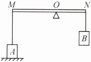 12. 如图所示,两个完全相同的实心物体A、B通过细绳系于可绕O点转动的轻质杠杆MON的两端,其中物体A置于水平地面上,物体B悬于空中,两物体均保持静止,杠杆在水平位置保持平衡,已知两细绳均沿竖直方向,$OM:ON = 3:2$,物体A、B都是高为10 cm的长方体,其密度为0.9×10³ kg/m³,取$g = 10 N/kg$,则物体A对水平地面的压强为 ( )