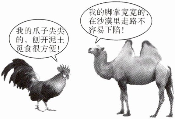 9.(新中考·学科融合)随着自然的进化,动物界中出现了许多压强应用高手,如图所示的公鸡和骆驼就是两例。公鸡的爪子尖尖的,觅食时减小______,增大______;而骆驼的脚掌宽宽的,这样在走路时能够______对地面的压强。