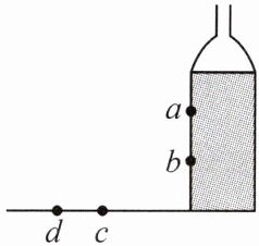 2.(2023·武汉)同学们可能做过这样的实验:在敞口塑料瓶侧壁上钻两个大小相同的小圆孔a、b,注入水,水从两个小圆孔喷出。在某一时刻,从两个小圆孔喷出的水分别落到水平地面上的c、d两处,其中d离塑料瓶远些,如图所示。下列说法正确的是 ( )