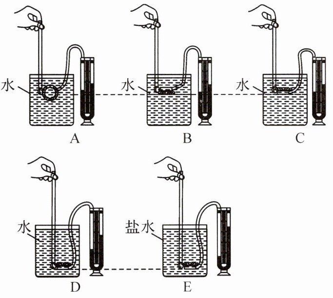 (3)通过比较D、E两个图,可得到结论:在深度相同时,液体的______越大,压强越大。