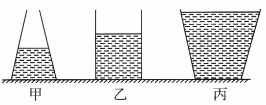 4. 如图所示,甲、乙、丙三个容器,分别装有硫酸、水、酒精($\rho_{硫酸}>\rho_{水}>\rho_{酒精}$),已知三个容器底面受到液体的压强相等,请判断三种液体:甲是____,乙是____,丙是____。