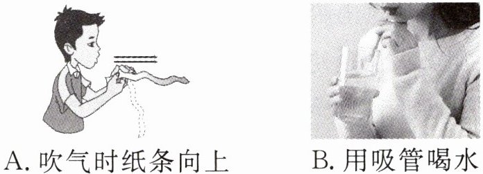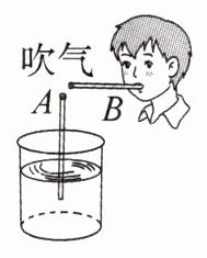 2.如图所示,取一根塑料吸管,在某处剪一水平切口,从切口处折弯吸管,把吸管插人水中。用力向管中吹气,发现切口处有水喷出。这是因为吹气时,切口处气体的流速大,压强_______,杯中水在________的作用下上升到切口处,随气流喷出。