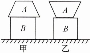 1. 两物体按如图所示叠放,物体A的小底面积是$20\ cm^{2}$,大底面积是$60\ cm^{2}$,重$20\ N$,物体B的上表面是边长为$5\ cm$的正方形,置于水平面上,求:在甲、乙两种情况下,物体A对物体B的压强。