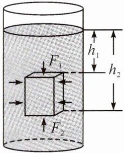 4.(2024·宿州期中)如图所示,重为8 N的长方体木块静止在液体中,如果上表面受到液体压力$F_{1}=5$ N,则下表面受到液体压力$F_{2}=$______N。