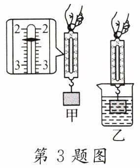 3.(2023·蜀山区期中)弹簧测力计通过细线吊着一个合金块,静止时弹簧测力计的示数如图甲所示,则合金块的重力是______N。将合金块浸没在水中如图乙所示,静止时弹簧测力计示数为1.9 N;则合金块浸没在水中时受到的浮力是______N。