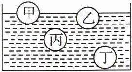 9.(2024·蚌埠期中)如图所示,体积相同而材料不同的四个小球甲、乙、丙、丁静止在水中,这四个小球所受的浮力分别为$F_{甲}$、$F_{乙}$、$F_{丙}$、$F_{丁}$,则( )