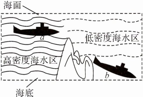 5.(2024·广州)潜水艇从海水高密度区驶入低密度区,急剧下降的过程称为“掉深”。如图,某潜水艇从$a$处驶入低密度海水区,“掉深”到$b$处。与$a$处相比,潜水艇在$b$处( )