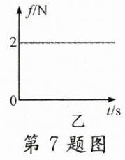 7.(2024·揭阳期末)如图甲,木块在2 N的水平拉力作用下在桌面上做匀速直线运动,直至离开桌面。请在图乙中绘制出木块所受桌面的摩擦力f随时间t变化的图像。