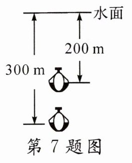 7.(中考·株洲)如图,我国一艘第三代093B型攻击核潜艇在一次军事演习中,停在水面下200 m处,后根据演习指令,下潜至300 m处悬停,在此过程中 ( )