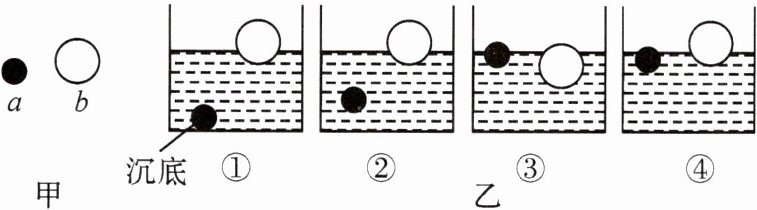 【项目原理】图甲中液体密度与______号小球的密度相同;
