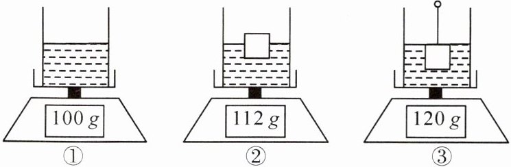 4.(2024·安庆阶段练习)学习了浮力知识后,小明利用电子秤来测量小木块的密度:①在称盘中放置装有水的烧杯;②将小木块轻轻放入装水的烧杯中;③用细针压住小木块,使其恰好浸没在水中。实验中水均未溢出,电子秤对应的示数如图所示,小木块的密度是______$g/cm^{3}$。