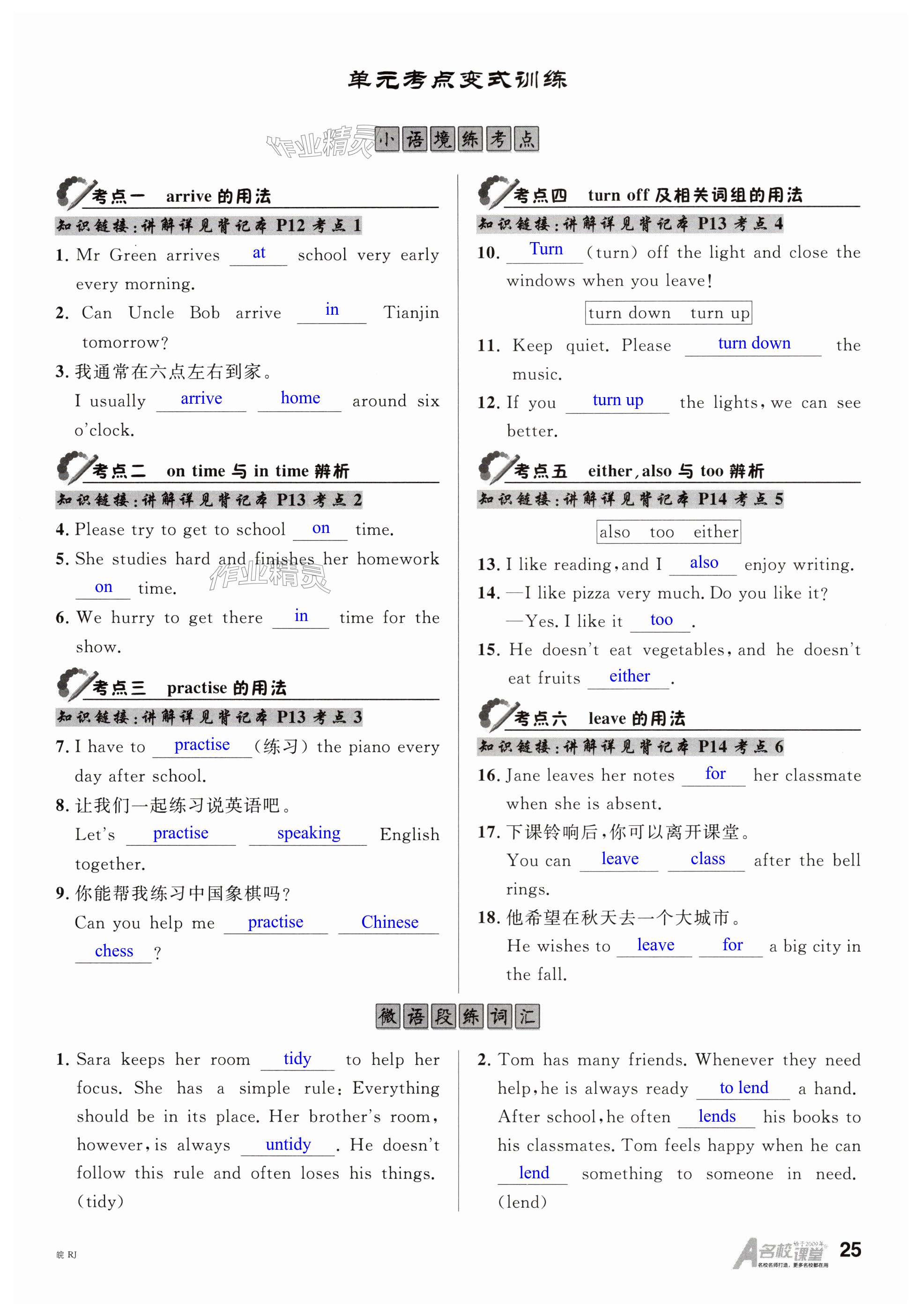 注:目前有些书本章节名称可能整理的还不是很完善,但都是按照顺序排列的,请同学们按照顺序仔细查找。练习册 2025年名校课堂七年级英语下册人教版安徽专版 答案主要是用来给同学们做完题方便对答案用的,请勿直接抄袭。