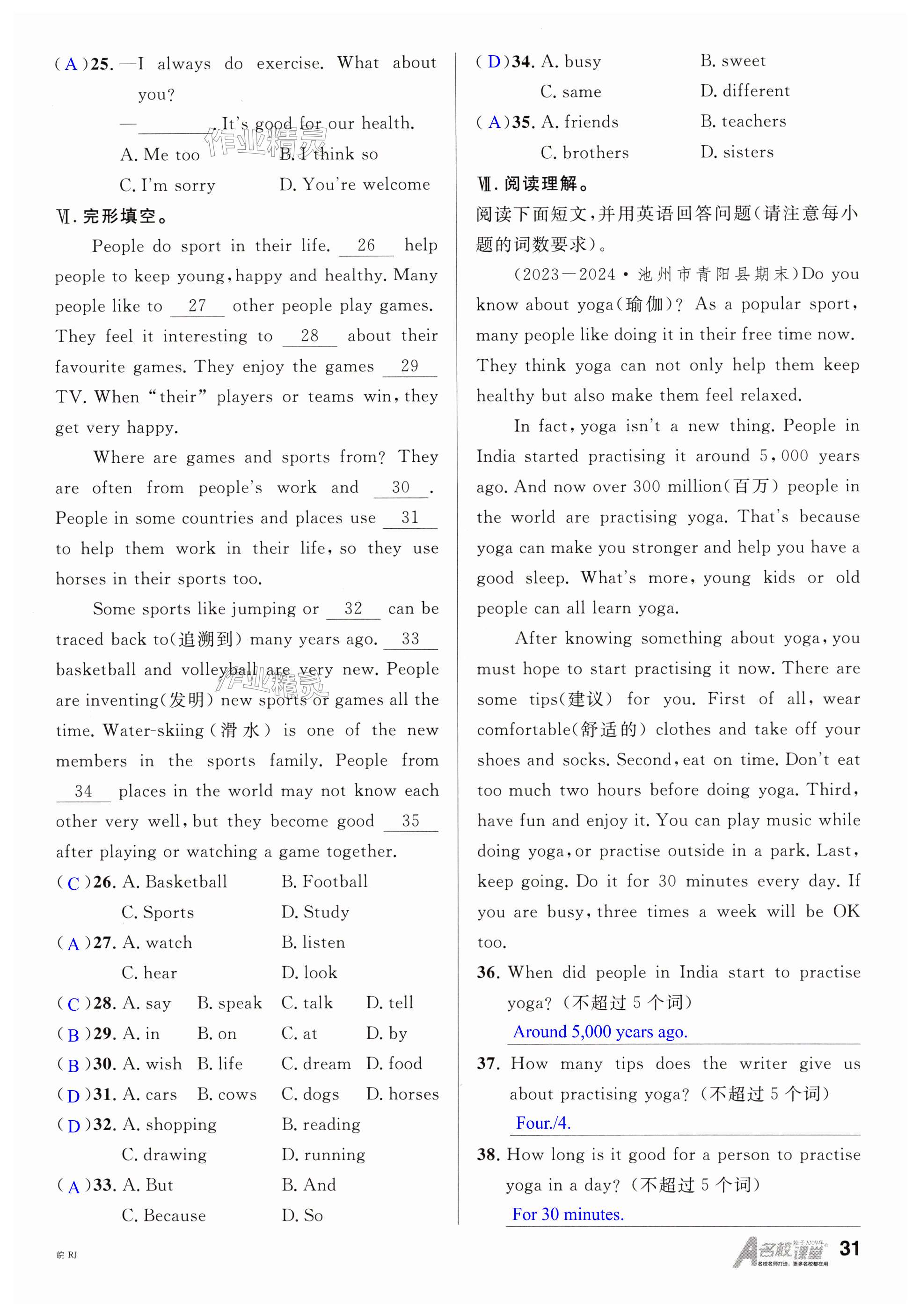 注:目前有些书本章节名称可能整理的还不是很完善,但都是按照顺序排列的,请同学们按照顺序仔细查找。练习册 2025年名校课堂七年级英语下册人教版安徽专版 答案主要是用来给同学们做完题方便对答案用的,请勿直接抄袭。