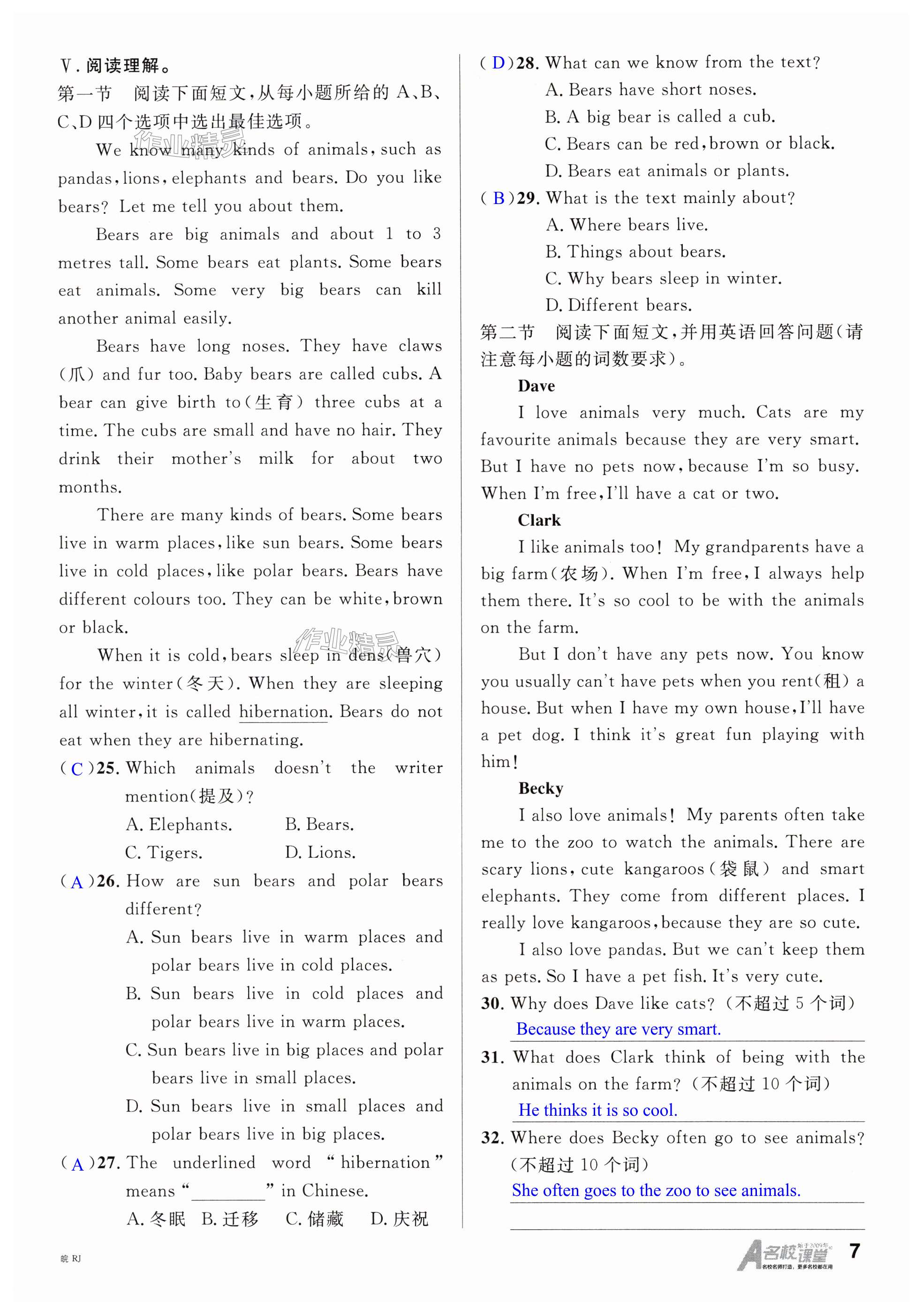注:目前有些书本章节名称可能整理的还不是很完善,但都是按照顺序排列的,请同学们按照顺序仔细查找。练习册 2025年名校课堂七年级英语下册人教版安徽专版 答案主要是用来给同学们做完题方便对答案用的,请勿直接抄袭。