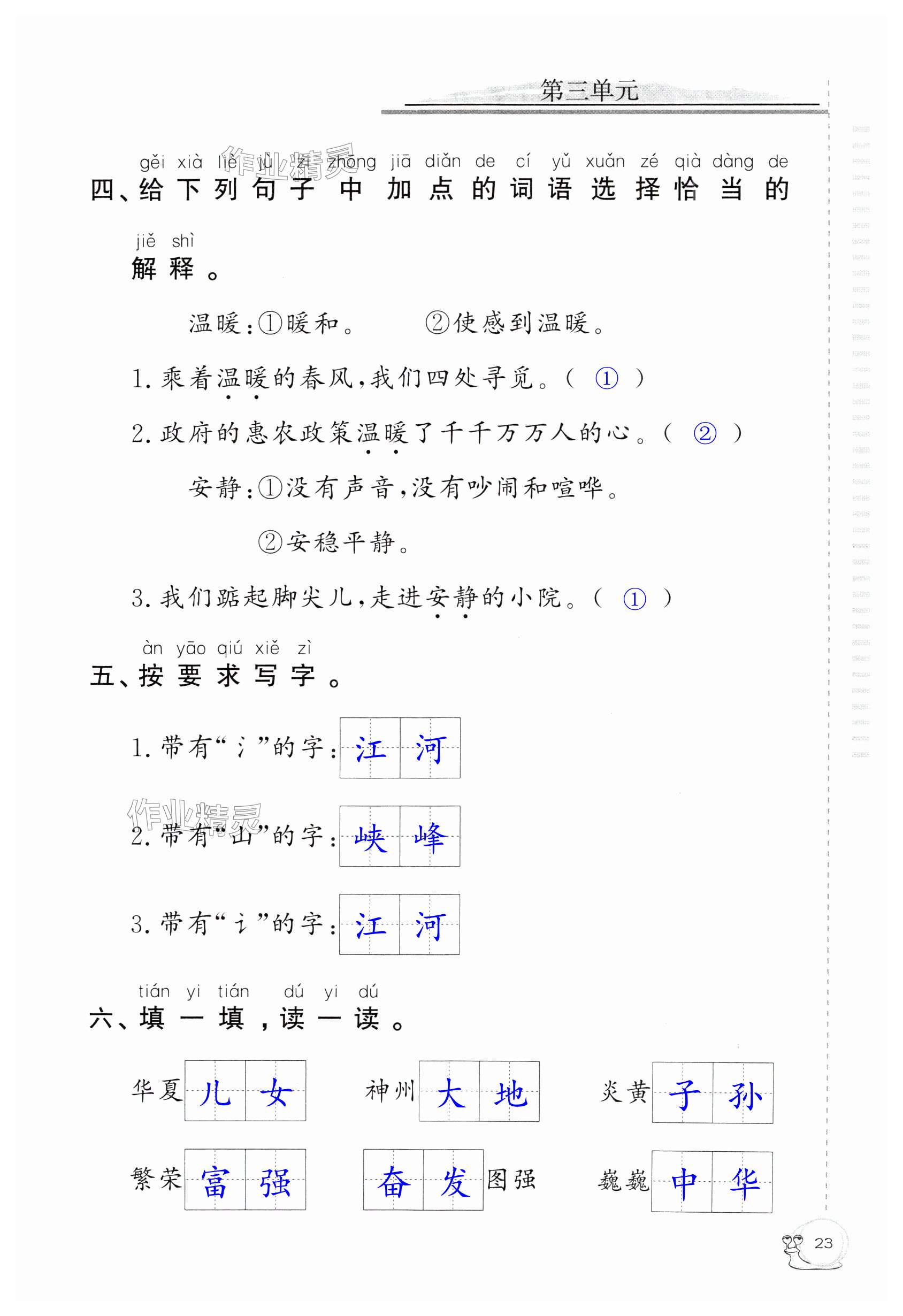 注:目前有些书本章节名称可能整理的还不是很完善,但都是按照顺序排列的,请同学们按照顺序仔细查找。练习册 2025年同步练习延边教育出版社二年级语文下册人教版 答案主要是用来给同学们做完题方便对答案用的,请勿直接抄袭。