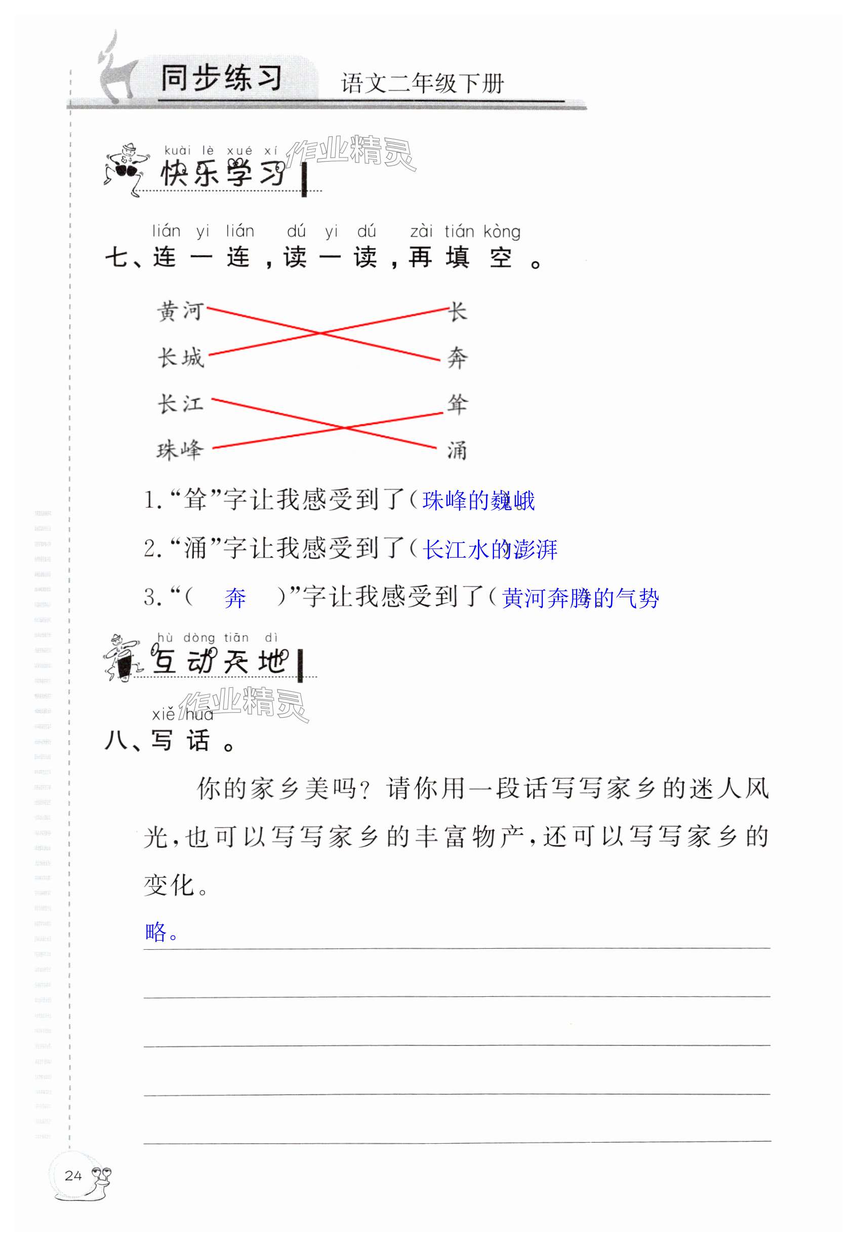 注:目前有些书本章节名称可能整理的还不是很完善,但都是按照顺序排列的,请同学们按照顺序仔细查找。练习册 2025年同步练习延边教育出版社二年级语文下册人教版 答案主要是用来给同学们做完题方便对答案用的,请勿直接抄袭。