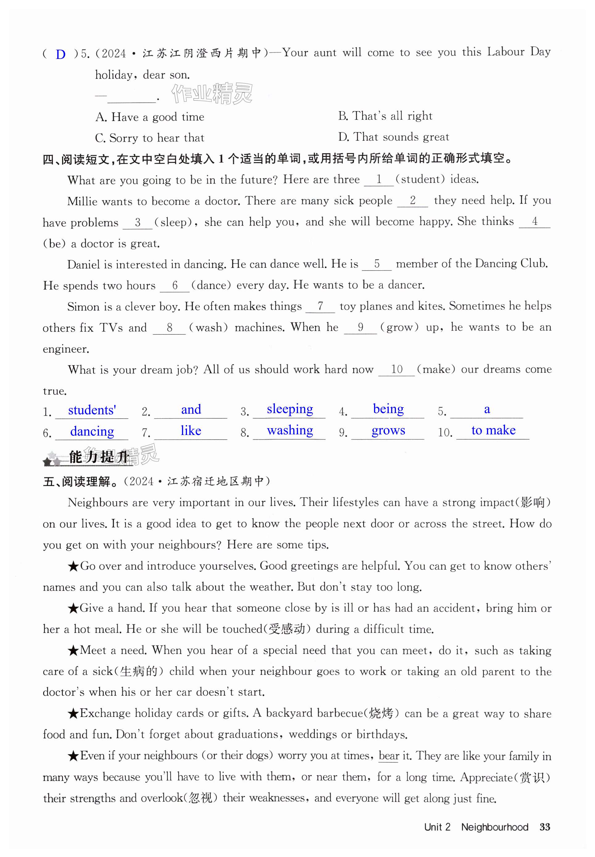 注:目前有些书本章节名称可能整理的还不是很完善,但都是按照顺序排列的,请同学们按照顺序仔细查找。练习册 2025年启东中学作业本七年级英语下册译林版宿迁专版 答案主要是用来给同学们做完题方便对答案用的,请勿直接抄袭。