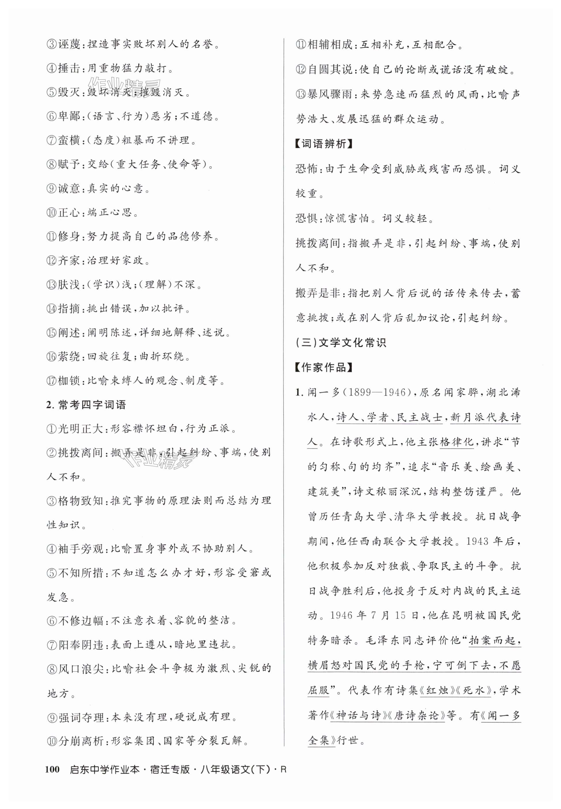 注:目前有些书本章节名称可能整理的还不是很完善,但都是按照顺序排列的,请同学们按照顺序仔细查找。练习册 2025年启东中学作业本八年级语文下册人教版宿迁专版 答案主要是用来给同学们做完题方便对答案用的,请勿直接抄袭。